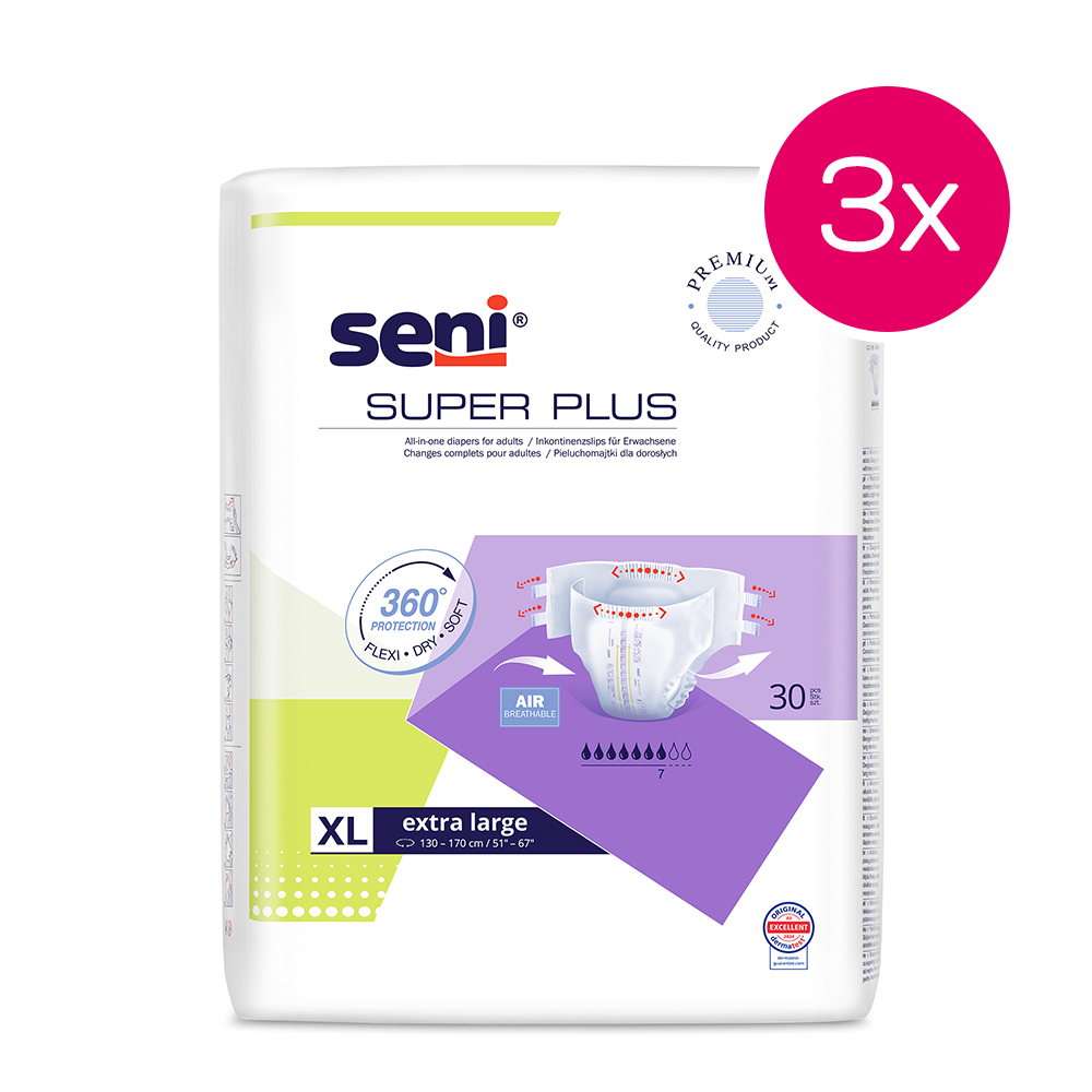 Die atmungsaktive Inkontinenzhose Seni Super Plus ist die beste Lösung für Menschen mit mittlerer bis schwerer Blasenschwäche, Harn- wie auch Stuhlinkontinenz.